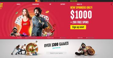 Welcome package up to 1000 USD + 200 free spins at Spinit