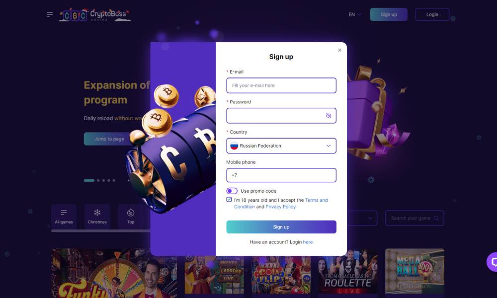CryptoBoss Casino embraces all modern trends in the world of online gambling. Here, you can play with both fiat and cryptocurrency. The club promises very fast payouts. The bonus program is extensive and diverse. There are several thousand slots available. Live casino games are also plentiful. As you can see, the club has something to offer to any gambler.