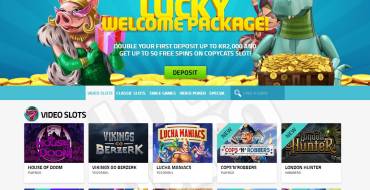 The symbol of the online casino discussed here is a funny dinosaur, imaged in style of clockwork toy. The name of the website supposes it should bring you some good luck. Main hero greets the visitors at the main page and hangs out with players in other departments of the website.