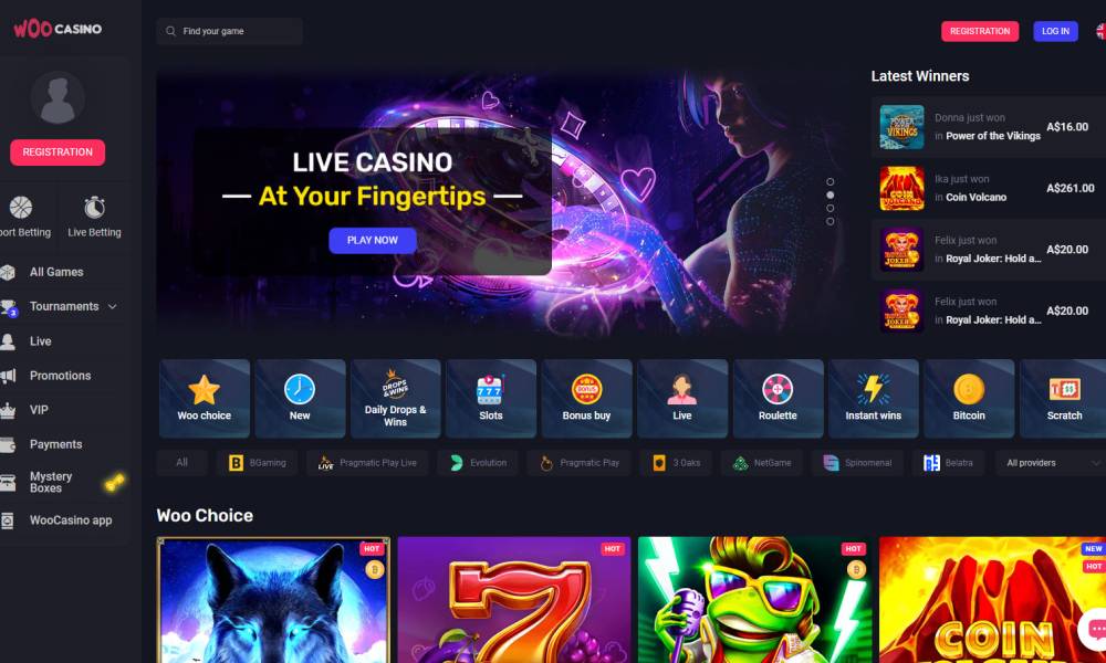 In the live Woo Casino, clients play for real money with real dealers. The dealers are located in studios of well-known providers, including Evolution Gaming and Vivo Gaming.