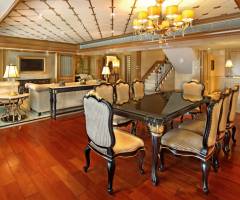 - Director Suite: Luxurious spacious room with bed, sofa, armchairs, dining area, minibar.