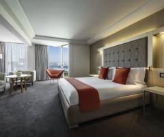 - Executive: Executive rooms (34 sqm) have a king bed or two separate beds. Junior Suite: The Junior Suite of 52 sq. m. is characterized by a panoramic sea view. panoramic sea view and has a king-size bed.