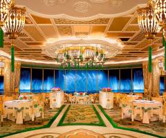 Tree of Prosperity pays homage to the four seasons. There is a marvelous combination of music, video and light. At the beginning, the golden dome opens, revealing an impressive 11-meter-long illuminated chandelier that was created from 21,000 crystals. Almost simultaneously, a large tree rises from the floor, each of its 60 branches consisting of 2,000 twigs and 98,000 leaves. They are decorated with 24-carat gold. As the tree rotates, state-of-the-art video technology creates the illusion of the changing seasons.