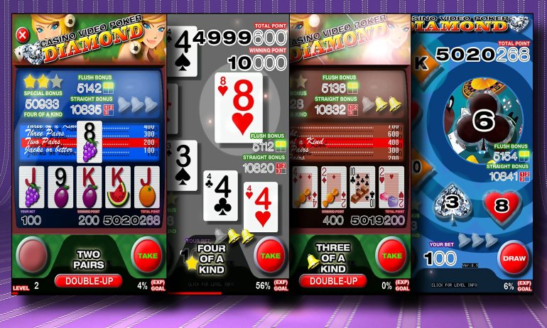 - Double-up game - If video poker offers this option, you can try increasing the payout by playing the double-up game. Usually, you see one face-up card and four face-down cards. You choose one of the four. If it beats the open card, your payout doubles. If not, you lose the bet. There can be a tie, too.