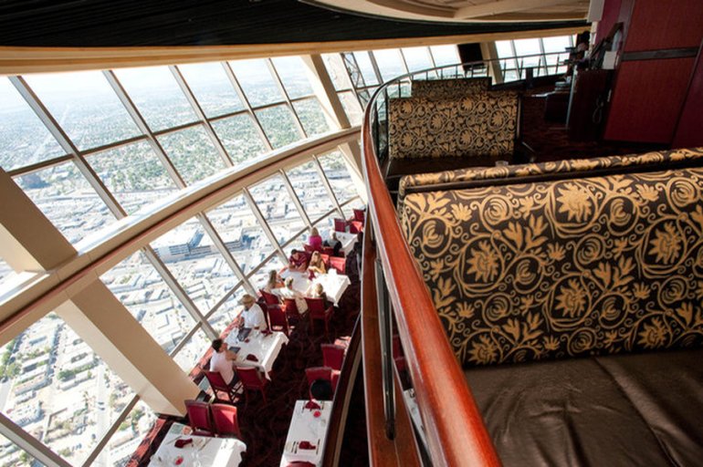 At the top of the Stratosphere Tower, users can find an observation deck, a revolving restaurant, and unforgettable thrill rides.