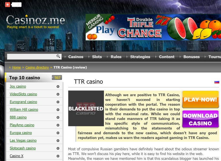 Initially, it was not even present on the homepage in the section Top Casinos. However, then TTR Casino moved to 4th place.