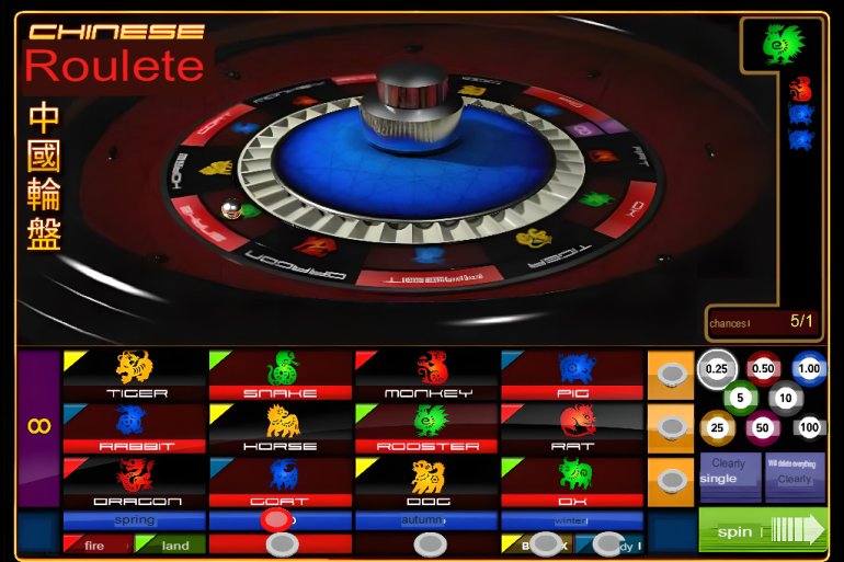Chinese Roulette by Oryx Gaming may surprise you with its symbols, which feature images of animals that, in astrology, have given names to different years. These pictures are available in four colors. There are also additional elements. Bets are made on individual symbols and their combinations, colors, elements, seasons, etc.
