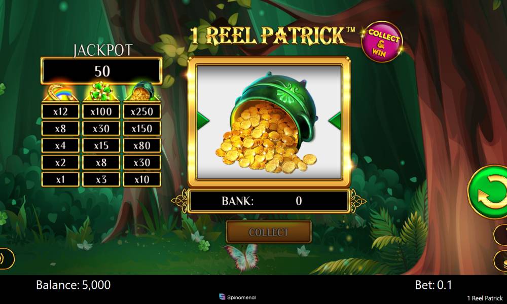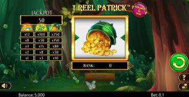 The 1 Reel Patrick slot machine from the Spinomenal provider has a non-standard playing field, consisting of 1 cell. All payouts are made for the number of repeated symbols.