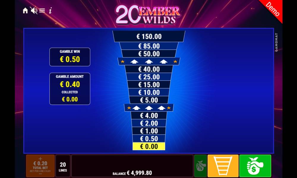 Two risk games have been added by the provider to the 20 Ember Wilds slot:
