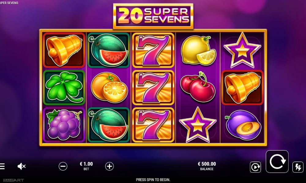 20 Super Sevens is a classic slot with 5x3 reels, 20 paylines and 10 symbols. To win, you need to combine the symbols on the designated paylines.