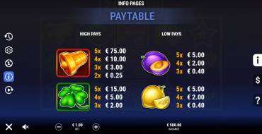 Scatter symbols in the form of a star are paid regardless of paylines. Three, four or five stars on the reels will win x5, x20 or x500 of the player's stake.