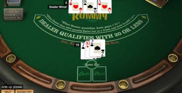 In 3 Card Rummy, in order for play to continue and bets to be played, the dealer's hand must qualify, that is, score twenty points or less. If the dealer fails to qualify with twenty-one points or more, your additional Raise bet is returned to you and the original Ante bet is paid as a one-to-one win. If the dealer does qualify, the hand with the lower score wins.