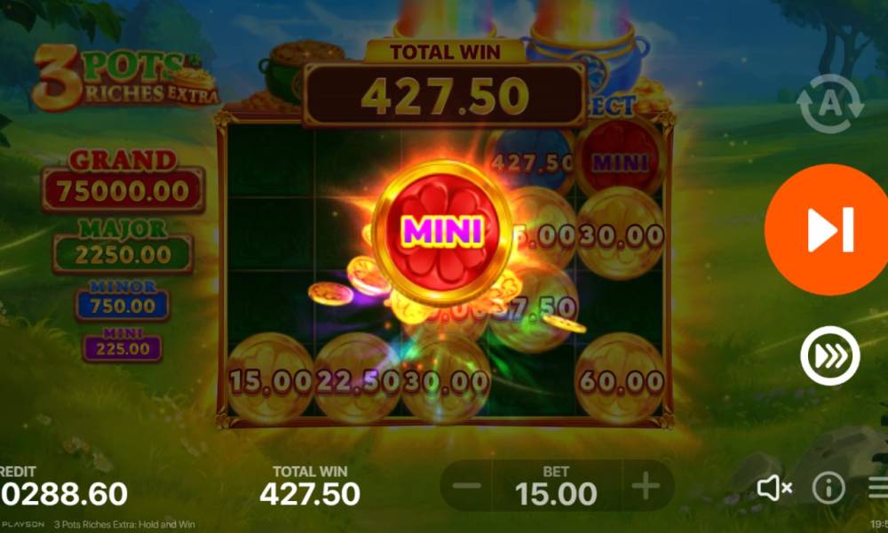 Colorful, bright slot 3 Pots Riches Extra: Hold and Win from the Playson provider, combined excellent graphics with the most relevant to date additional mechanics. Bonus system and payout table allow you to count on a fairly large winnings with a certain luck.