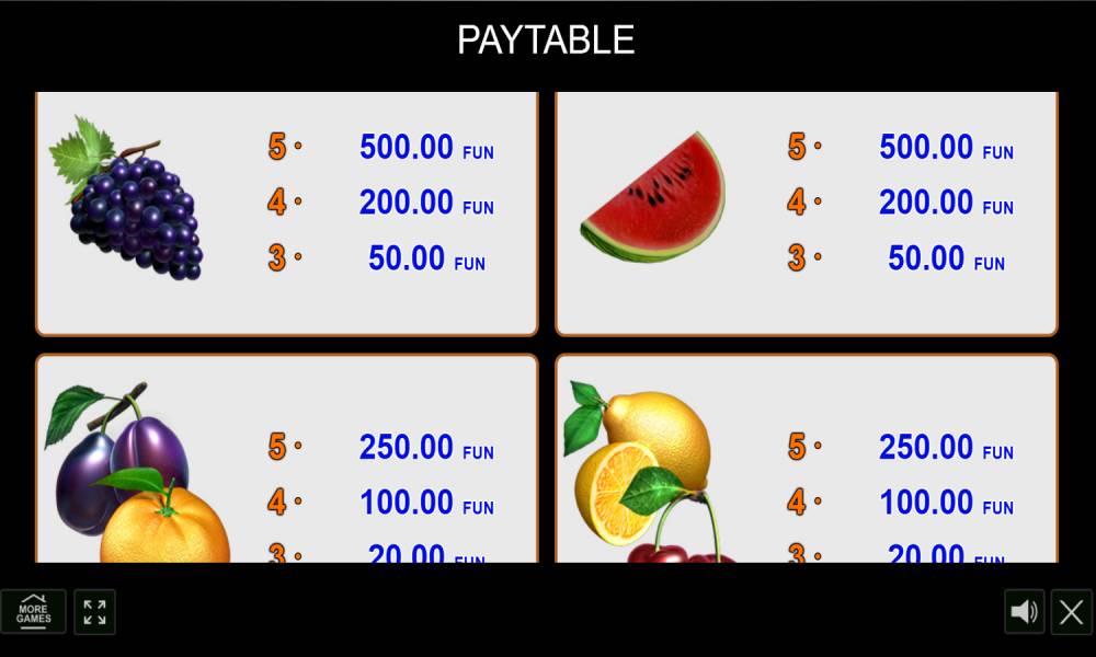 Game rules, features of the online slot, winning lines, cost of symbols and other information is presented in the menu, which is marked by three horizontal bars. Before you start, it is better to familiarize yourself with the information so that there are no questions later.