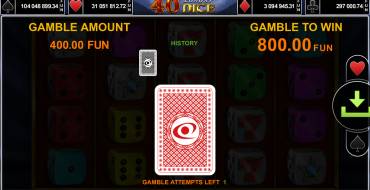 In slot machine 40 Luxury Dice users can test their intuition and increase their earnings. If you press the "x2" button after a successful spin, a regular playing card appears on the field at once. You need to guess its color - red or black. The correct answer doubles the winnings for a spin, wrong - nullifies it. After a successful attempt can take the money earned or risk them again, but no more than three times.