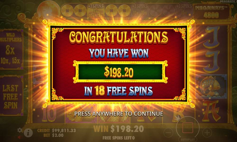 Asian setting has always caused a pleasant feeling among users. There's simply nowhere to complain about the quality of design and sound. Despite the large number of available mechanics, they do not interfere with each other, and perfectly combined. Multipliers, free spins, extra bets and much more are present in the slot. There is a lot to do, you will certainly not be bored. The maximum winnings can reach x8000 from the bet, which is a lot. I think that the game is definitely worthy of attention and can interest many people. Not without a spoonful of tar - high volatility reduces the chances of the player, and it is felt accordingly. To try it or not? The choice is yours!