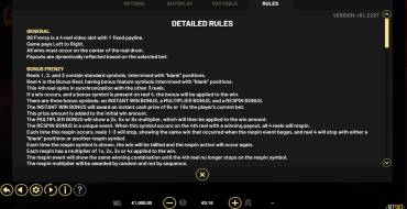 Bonuses are triggered only if there is a payable combination on the reels and the Bonus takes the center position on its reel. None of the three features can be activated if there is no payout.