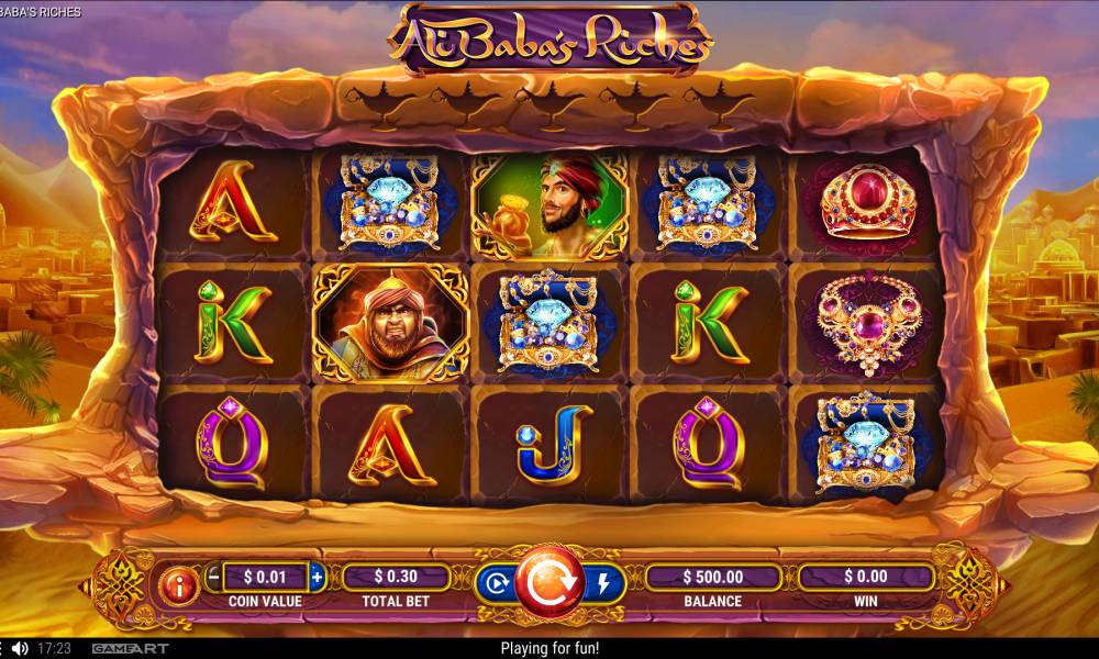 Ali Babas Riches slot machine from the provider GameArt is all about Ali Baba. If you're lucky enough, this slot will allow you to win incredibly large prizes, up to 5,000 bets. What's more, there is a free spins mode that will significantly increase the probability of a big win.