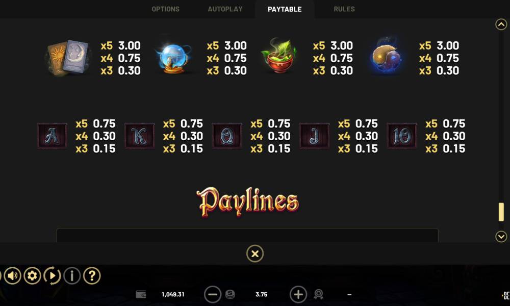 If you want to get a payout, you must create a combination of 3 or more identical symbols on the pay lines.