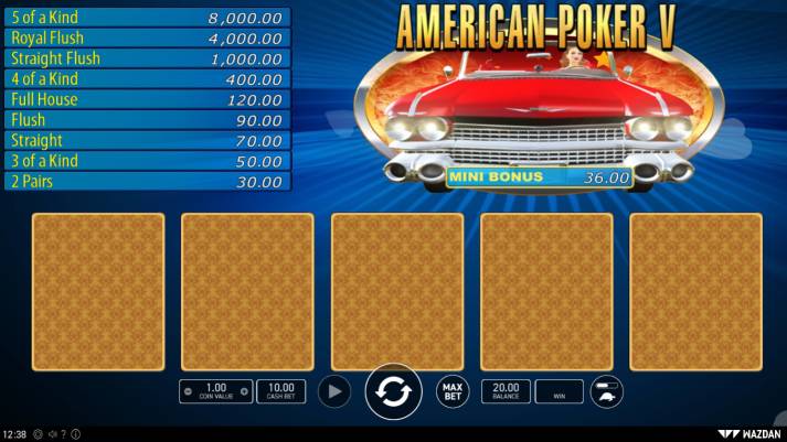 Test the American Poker V free at Casinoz.club or play the video poker for real money at online casinos, working with Wazdan.