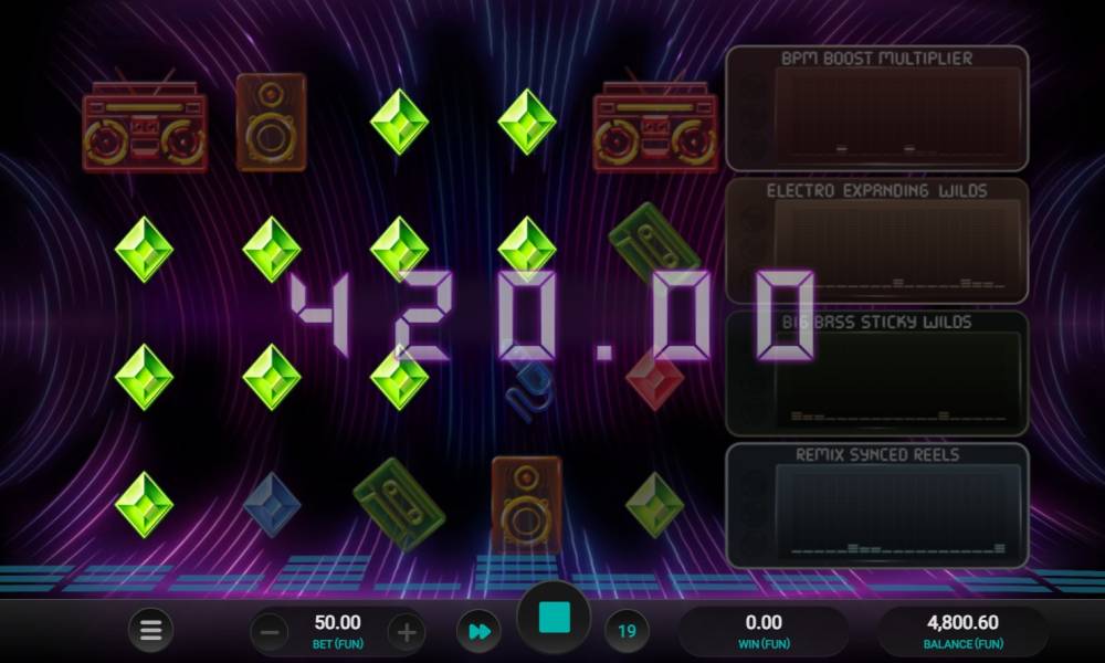 | Bonus games | Free Spins, Expanding Wilds, BPM Boost Multiplier, Big Bass Sticky Wilds, Remix Synced Reels |