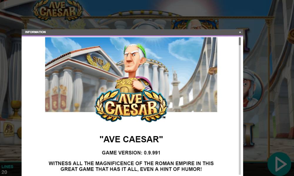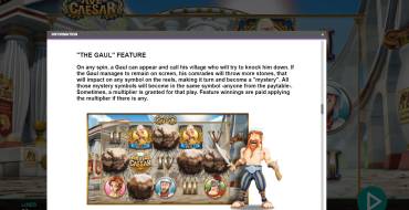 - Ave Caesar – Caesar demands to pay some amount to the player. Then he offers to pick one of six scrolls to find out type of reward. It can be a money prize, free spins or one of prize features, described below in the review of this video slot.