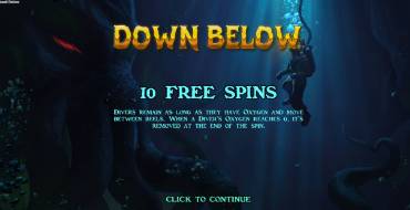 Down Below Bonus Round is triggered by 4 FS symbols and also gives 10 free spins. In this mode, a diver with a multiplier of up to x200 appears on the reels, moving around and consuming oxygen charges.