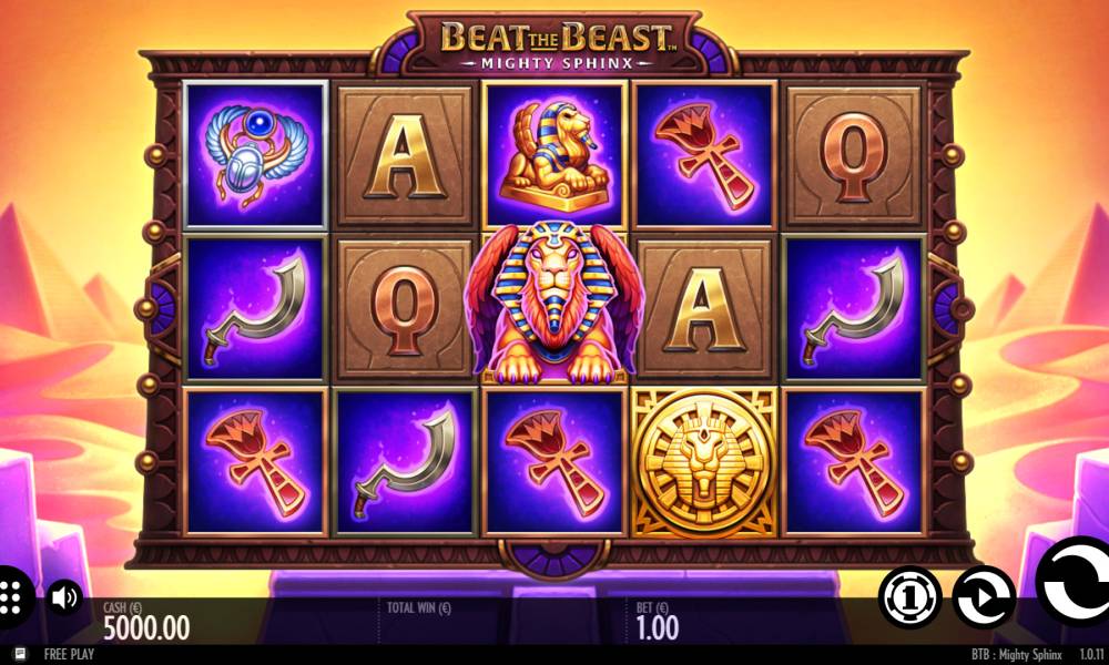 Beat the Beast: Mighty Sphinx is a video slot that features 5 reels and 9 paylines across a 5x3 matrix. All lines are always active on default.