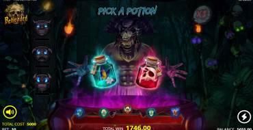 Pick a Potion. After a round of free spins, the player is offered a choice of two potions. Butterfly Bottle guarantees from x5 to x8000 in addition to the payout received. Skull Bottle offers to risk the money received during the free spins. They can be lost or won the maximum prize - x15950 of the bet.