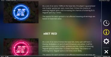 xBet Red. Increasing the bet by 9 times, increases the probability of activating Vegas$ Spins by 15 times, and B.I.G. Vegas$ Spins by 50 times. Also, every second spin will be accompanied by the appearance of Overlay Multipliers with x2 and x3 multipliers. Amplifiers will also work at this point.