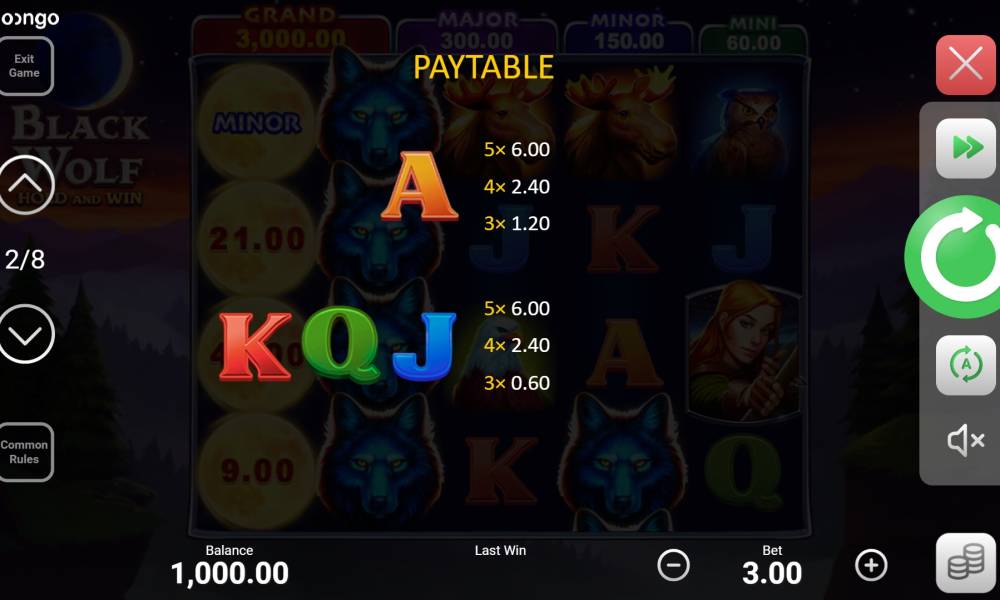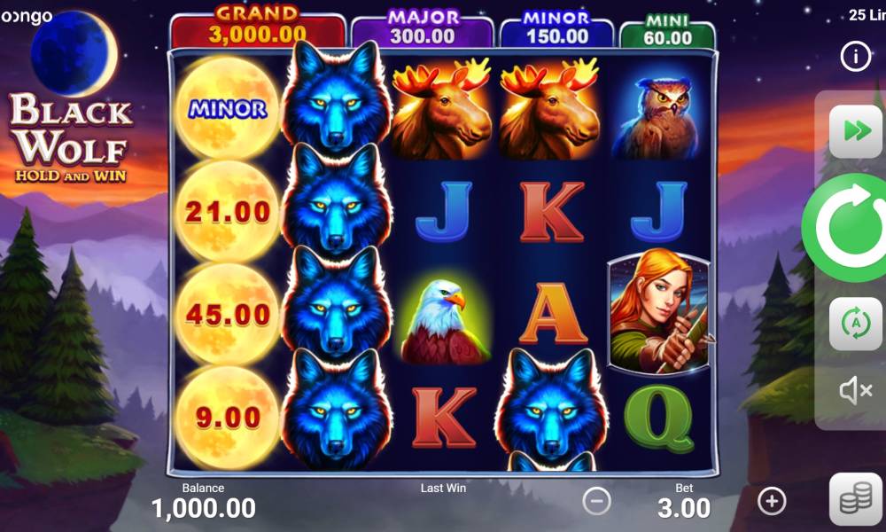 Demo version of online slot Black Wolf from 3 Oaks Gaming is created by the developer so that players can familiarize themselves with the mechanics and features of the game without risk. This is a great opportunity to test the slot without spending your own money, to study its functionality and understand the bonus features. In demo mode players can freely study the payout table, rules and features of the Hold and Win bonus game, as well as to assess the volatility and frequency of winnings.