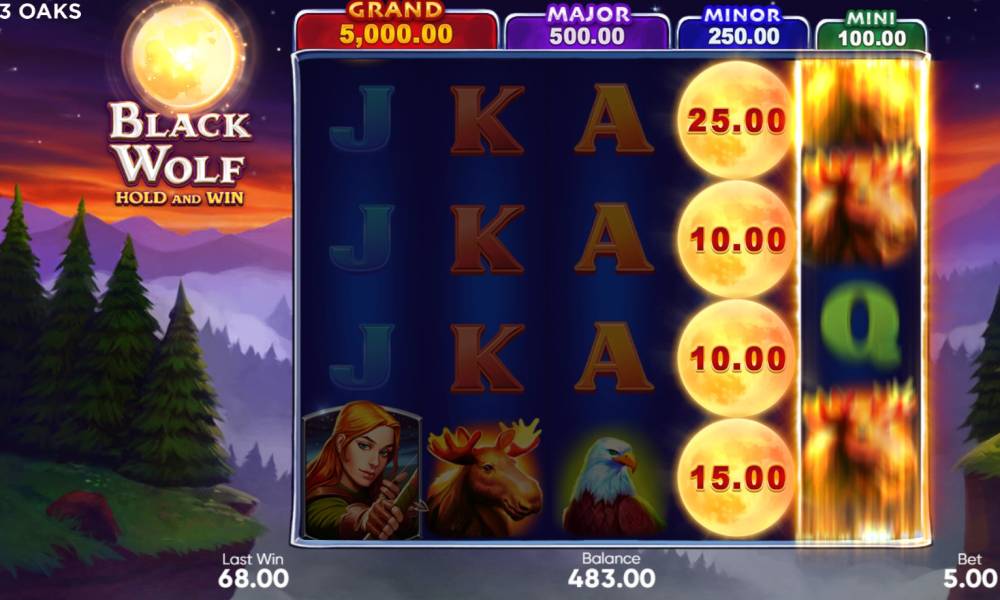 Black Wolf by 3 Oaks Gaming is an atmospheric slot with Hold and Win mechanics that combines exciting gameplay and impressive design. I tested the game and immediately felt its unique atmosphere: a wild forest flooded with moonlight, predators lurking in the shadows, and the feeling of a real hunt. Symbols are made with a high level of detail, and the background music enhances the immersion effect. For gamblers, the slot offers a classic Hold and Win bonus, which is activated when six or more bonus moon symbols fall out. In this mode, you can rip off one of the fixed jackpots, including the Grand. The only nuance is high volatility, due to which winning combinations do not fall out as often. However, the maximum winnings of 5000x make the game really worthwhile.