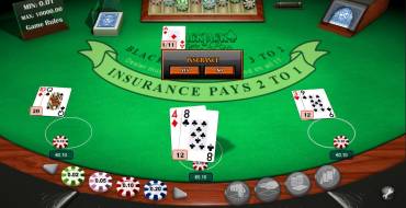 If the dealer has an ace as an upcard, a dialog box with various options for insurance appears. Insurance can be taken on certain boxes or for all bets.