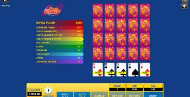 The maximal bet provides the gamblers with a kind of privilege. In particularity, if the player places five coins, payoff for Royal Flush is increased. Please see the pay table to make it sure.