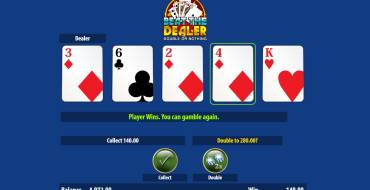 Then you may collect money or try to increase the win in the gambling feature. This round takes place at the special screen with five face-down cards. One of them belongs to the dealer. You need to reveal any of the rest four. Your card is compared to the croupier’s: