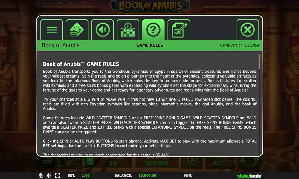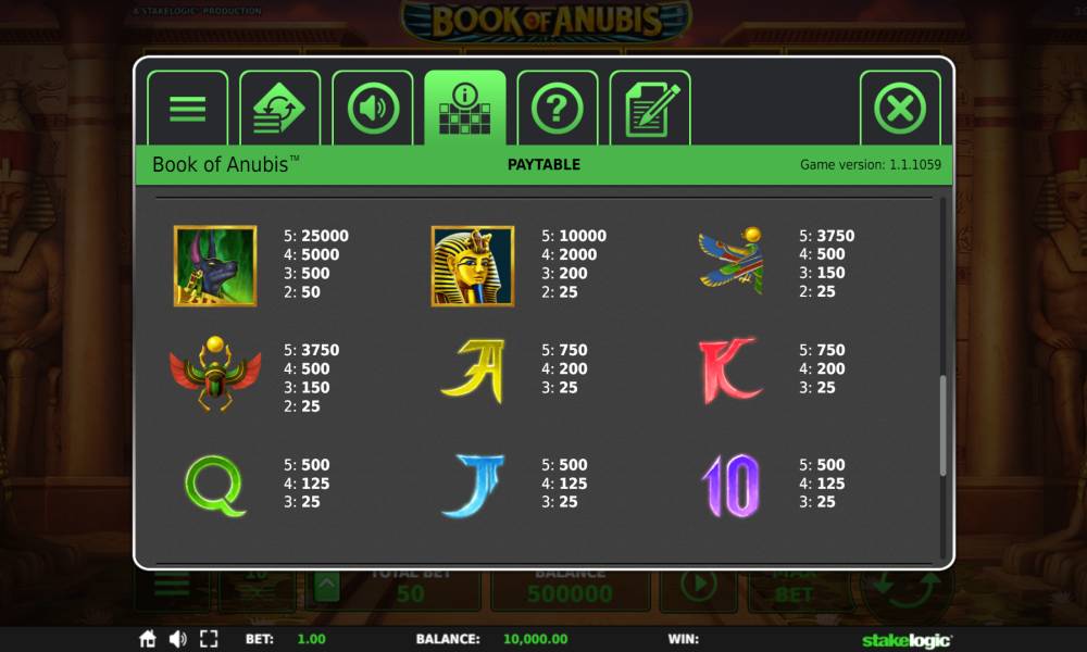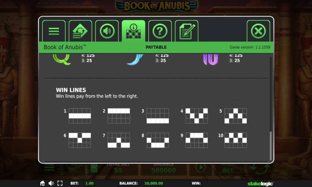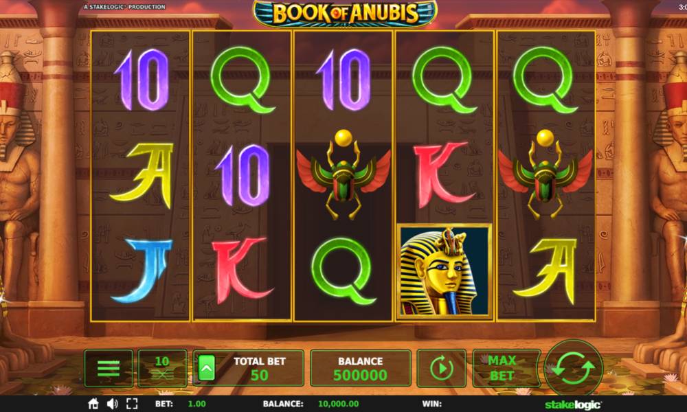 The Book of Anubis slot from the provider Spinomenal has a 5x3 field with 10 paylines.