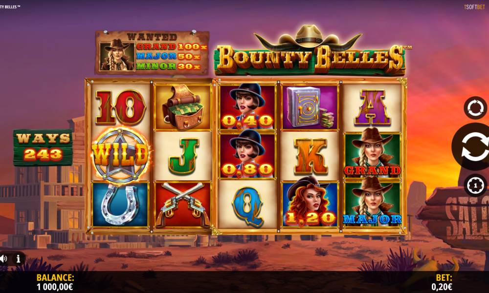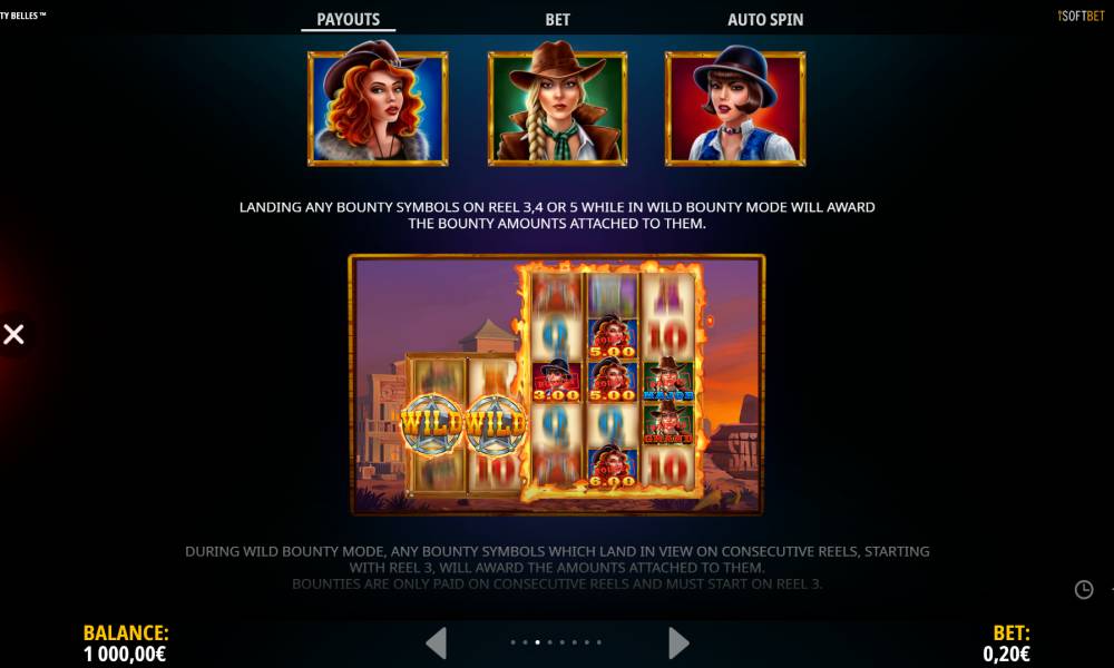 The Bounty Belles slot machine from the provider iSoftBet is dedicated to beautiful girls from the wild west. If you're lucky, you can win very large prizes, up to 10877 bets! There are also a few special features that will increase the chance of a big win.