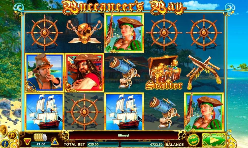 «Buccaneer’s Bay» offers different types of ordinary and special symbols, a game of chance and free spins with bonus features.