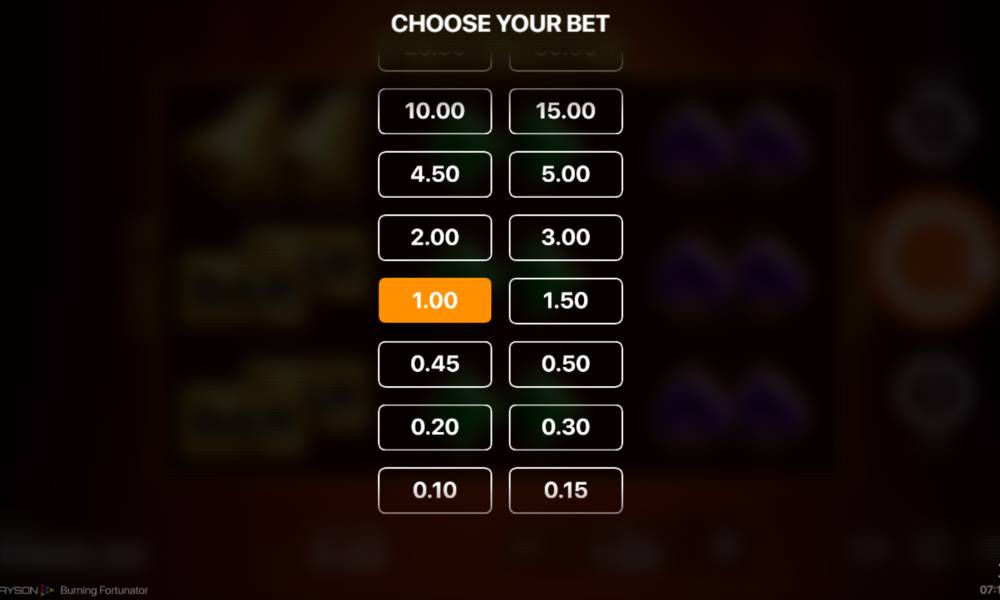 The interface of the Burning Fortunator slot machine from the Playson provider is simple and understandable. The main menu spins, bet selection, and auto-play buttons are on the right.