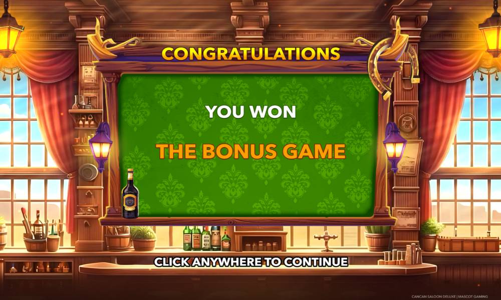 Cancan Saloon Deluxe is a slot dedicated to the Wild West theme. It was released by Mascot Gaming studio in October 2024. The slot has a small field with payouts for lines that run from left to right. There is an unusual feature: in each spin (regular and free), at least 1 random reel gets a full-height Wild feature. There's also a bonus round (bottle shooting) and a risk round (wheel of fortune).
