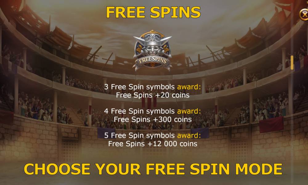 • Free Spins – you can earn the right for free spins by collecting a proper number of Scatters or purchase it for an estimated price. The feature is available in one of two modes: Training or Deathmatch. In the first case, the player gets all payoffs he wins during the round, while in the second he can risk his money in hope for high multipliers. If you are brave enough to take the second option, you have to pick a gladiator and hope he wins.