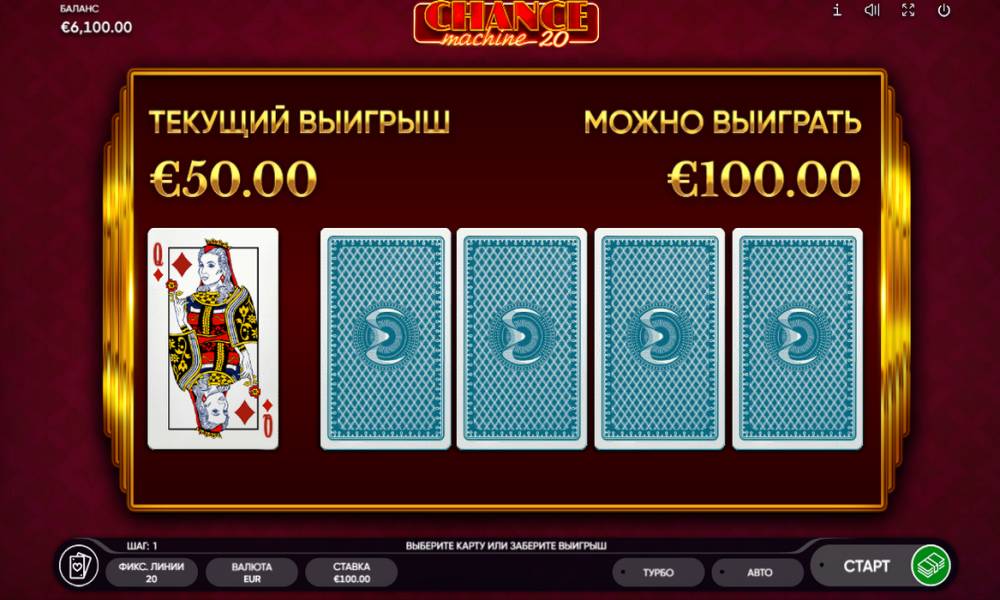 Slot Chance Machine 20 has a classic interface, characteristic of products brand Endorphina. Here everything is clear even to someone who is playing gambling for the first time: signed buttons, visual payout tables, textual support for each action. The player needs to perform a few steps: