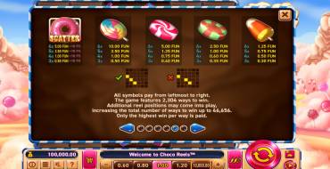 Remember that there is no strategy that guarantees a win - it all depends on luck. However, you can use different betting systems to better manage your money and increase your chances of success. In the Choco Reels you can choose the level of volatility: low for frequent small wins or high for rare big payouts.