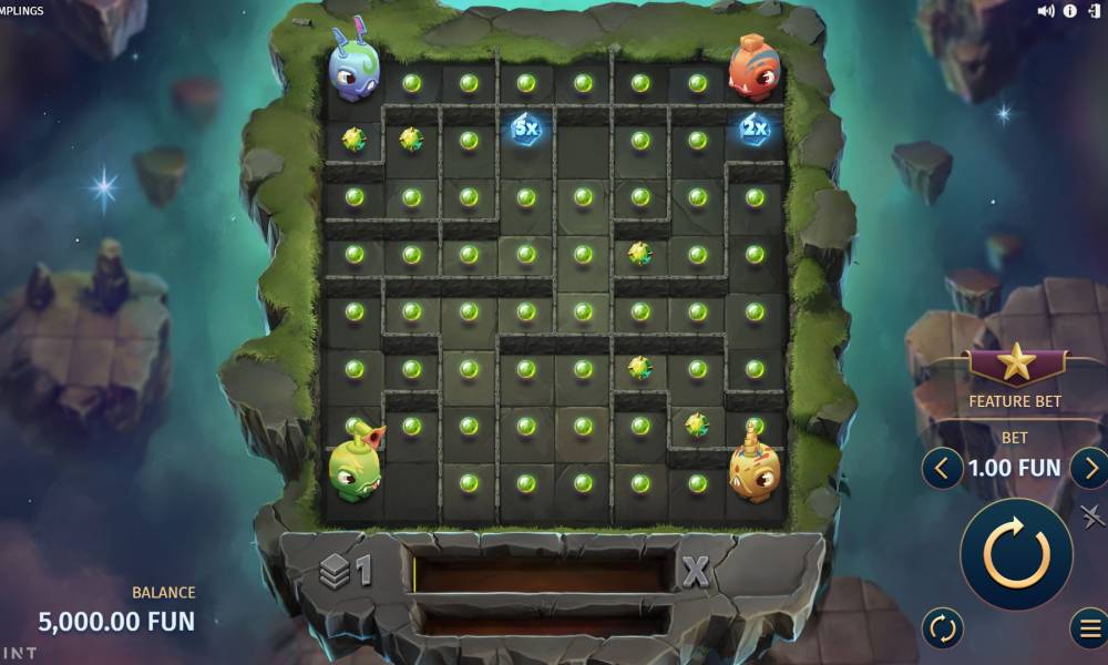 The rules of the online slot are somewhat similar to other Crash games. The user needs to run 4 chomplings at the same time, and everything that they meet and eat on the way - will be collected in the common pot (the amount can reach x20000 from the bet). Combinations are not involved in the game, although there is some semblance of symbols here. On the way monsters will get shards of gems and multipliers. If you manage to clear the playing field completely, then instead of small crumbs there will already be pebbles and a completely new map of the area.