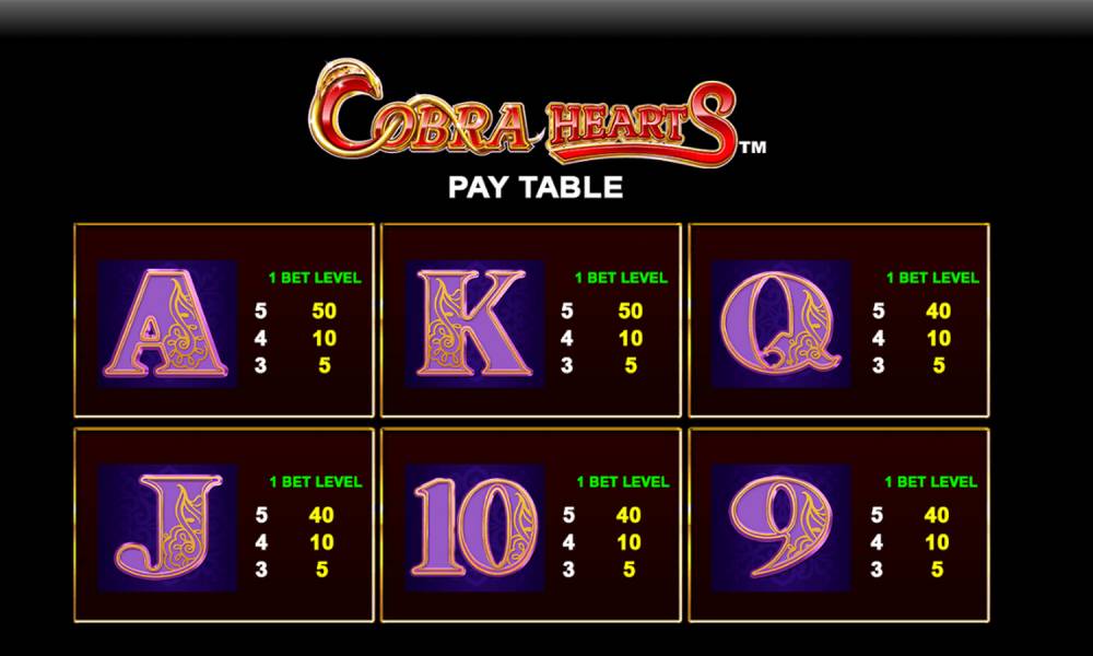 Cobra Hearts slot machine is made as easy to operate as possible, so as not to interfere with the enjoyment of the process.