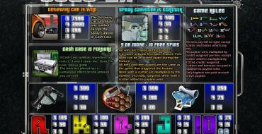 The gun, time bombs, plan of the bank and ranks of playing cards from ten to ace are ordinary pictures that can be seen on the reels of this video slot.