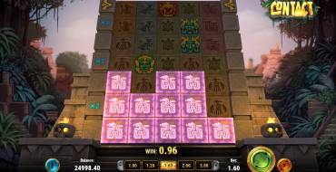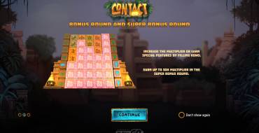 The Contact looks like no other traditional slots. There are no reels in its familiar format here. Icons of stone blocks shape drop at the gaming field forming five columns of seven elements each.