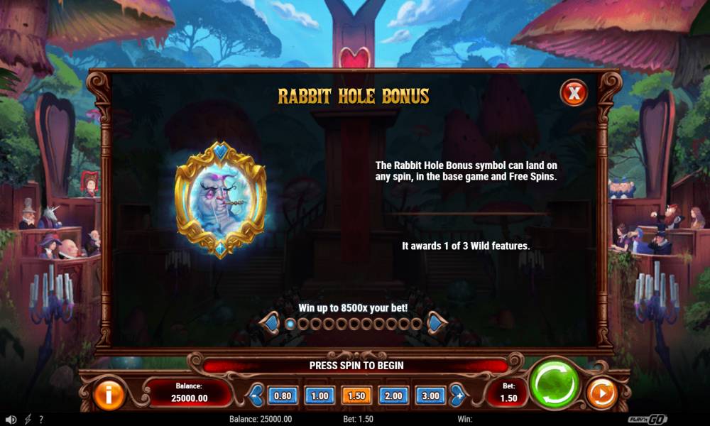 Alice in Wonderland is the main theme of the Court Of Hearts slot machine from the Play’n Go provider. If you are lucky, you can win large prizes, up to 8,500 bets. There are many features that make the game process more interesting.