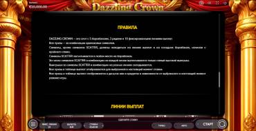 On the playing field of the Dazzling Crown spinning 5 reels, arranged in 3 rows and have 10 fixed paylines. The size of bets - is from 0.10 to 160 coins. Winning combinations consist of identical symbols that are placed in a row on neighboring reels starting with the leftmost. Each symbol when falling out in the amount of 3 or more pieces (except for 7, which are counted from 2 symbols) gives a certain multiplier to the current rate. Maximum multiplication promises the appearance of 5 symbols with the number 7 - x500 to the bet!