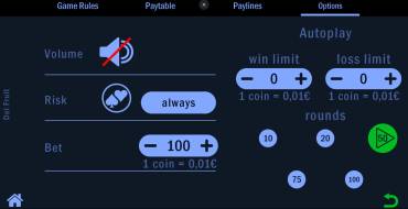 The interface is simple and understandable. You can find buttons for choosing the bet and start spins at the right bottom of your screen. There are settings and menu buttons on the left.